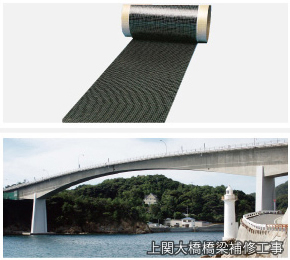 コンクリート構造物の補強・補修には、軽量・高強度・高弾性に優れた炭素繊維シート
